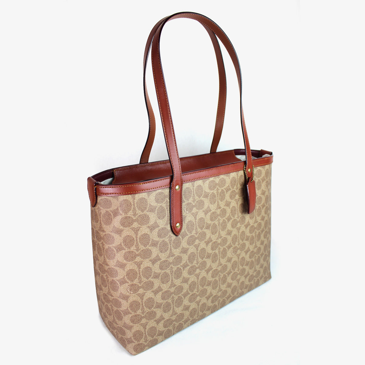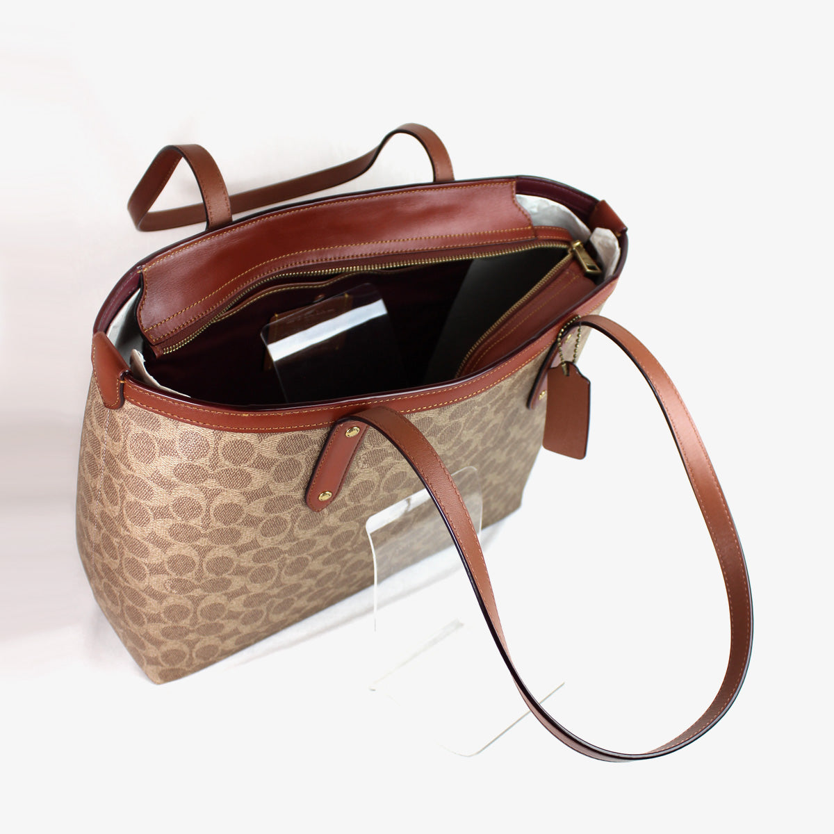普段使いにはもちろん、1泊用としても理想的です。細めのロングストラップが肩になじむこのトートには、トップにファスナーが付いています。シグネチャー キャンバスで仕上げ、ディテールにはリファインド レザーをあしらいました。